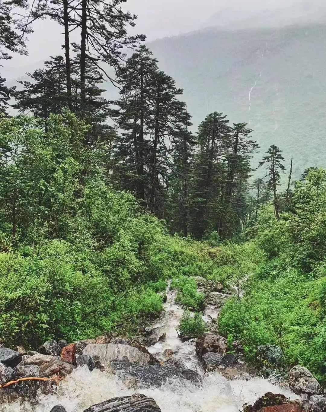 从出发到现在,一路的阴雨不断;湿答答的衣服;泥泞的道路;浑浊的鞋子,但一切都是值得的,我们看到了非常人一般的风景,感受到了墨脱的雪域热带雨林,仿佛自己看到了世界,其实这是世界的一半。7月23日,正常的路线是拉格到汗密,然而我们在他们之间选择停留在大岩洞。你问我为什么会选择大岩洞,因为泥泞的道路,有一种踩泥一分钟,拔腿两小时的劳累即视感;还有一路风景太美,总是深陷其中。