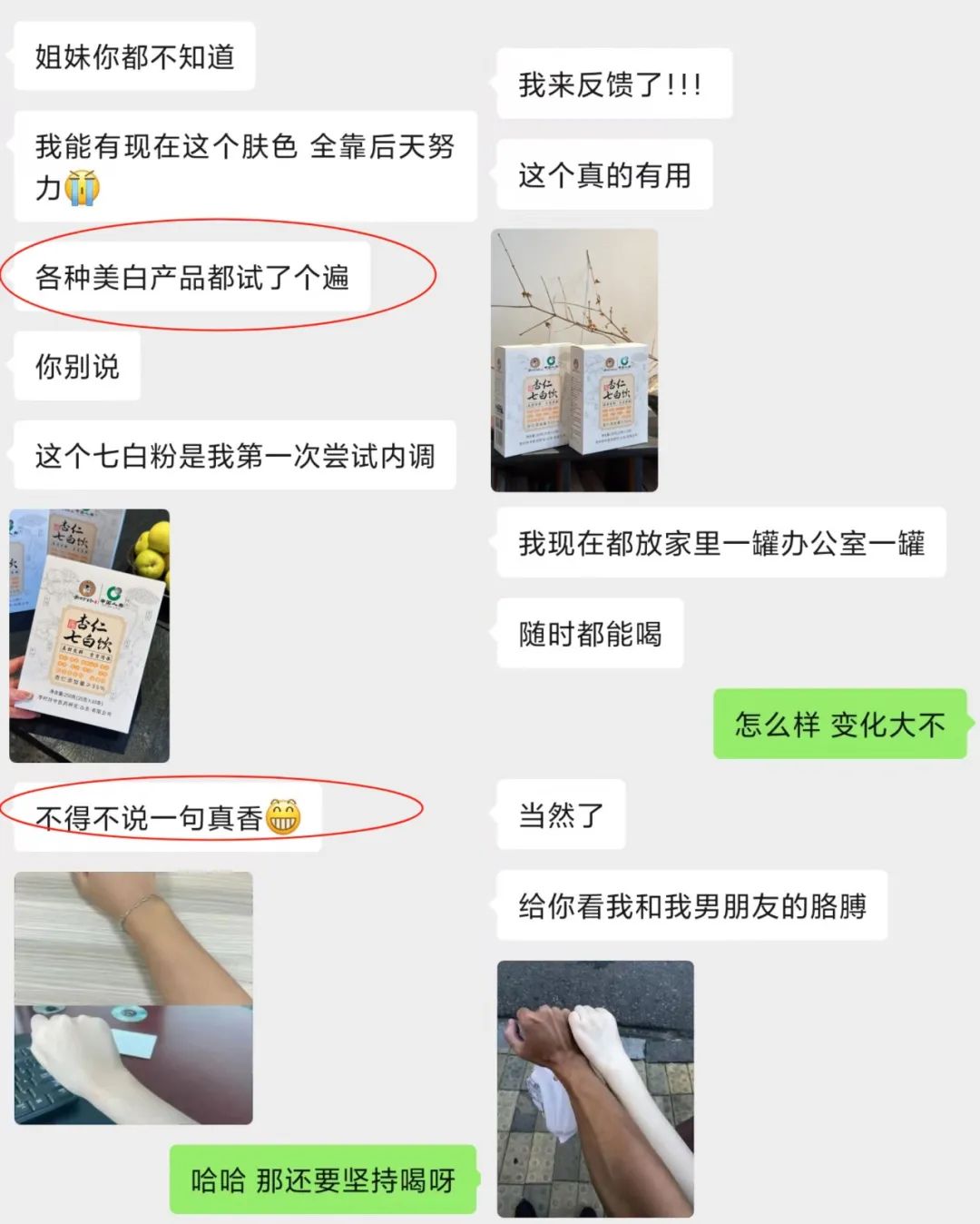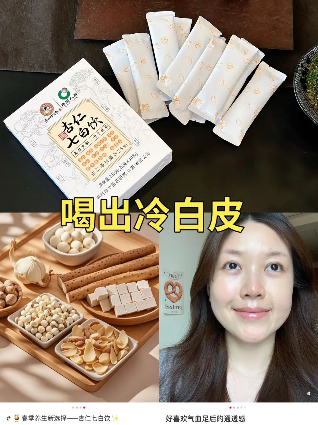暖暖我作为一个天生黄皮,经常会去搜索各种方法,效果微乎其微...抱着好奇的态度,试了一下这个杏仁七白饮。在连续喝了一段时间,我自己都惊呆了!没想到效果这么好!