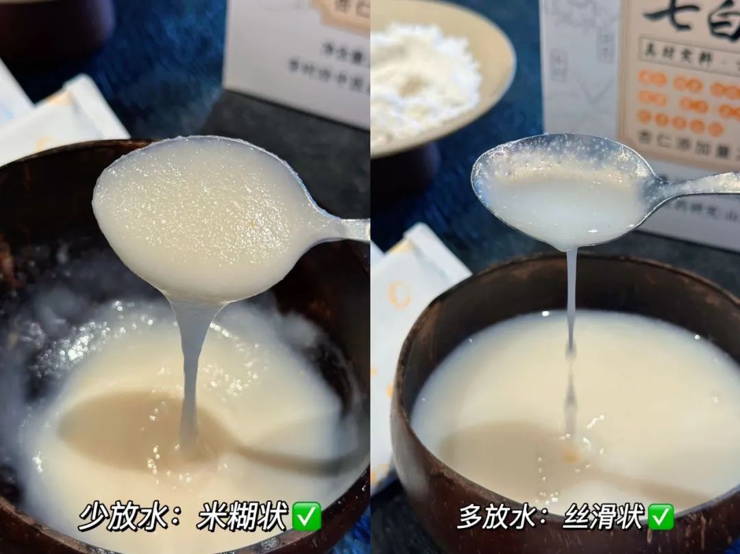 既可以直接取一小袋杏仁七白粉,加入 80℃左右约 150ml 的热水,搅拌均匀;也能先将粉倒入杯中,用少量冷开水搅拌均匀后再注入热水。