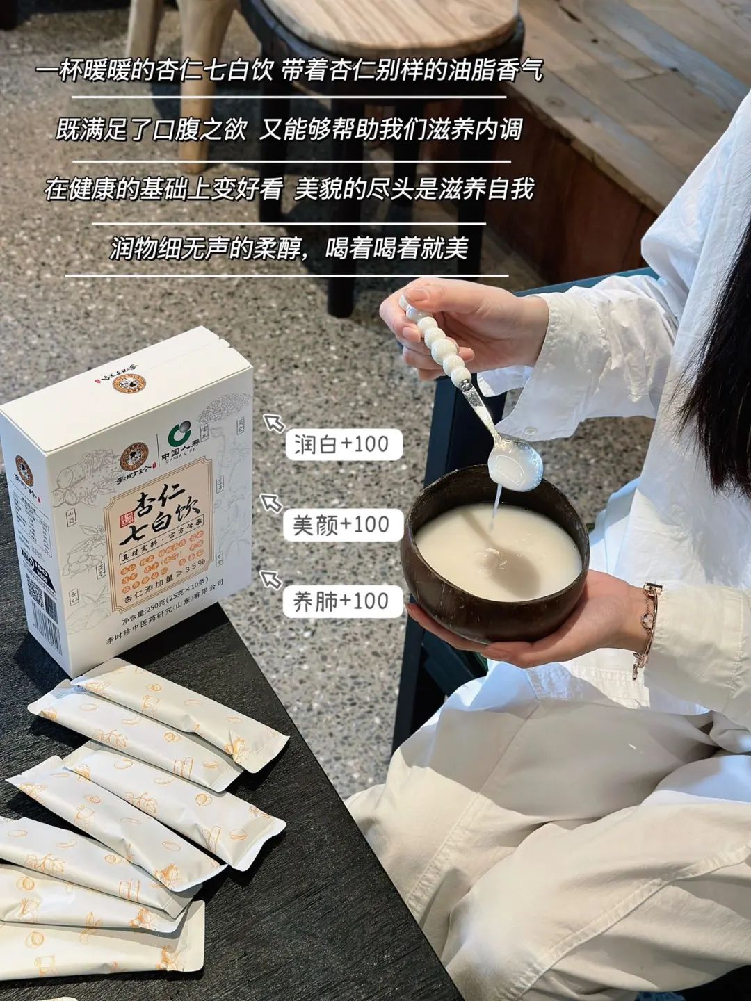 如此方便又美味的杏仁七白饮,坚持每天饮用,就能让你悄悄发光惊艳四方。