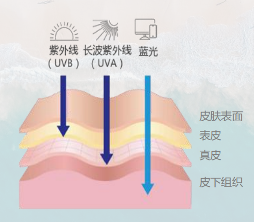蓝光对皮肤的穿透力比紫外线更强,