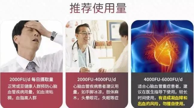 已经确诊有血栓的人群,每日摄入量应该在2000FU-4000FU,才能有效溶解血栓,并且防止复发。