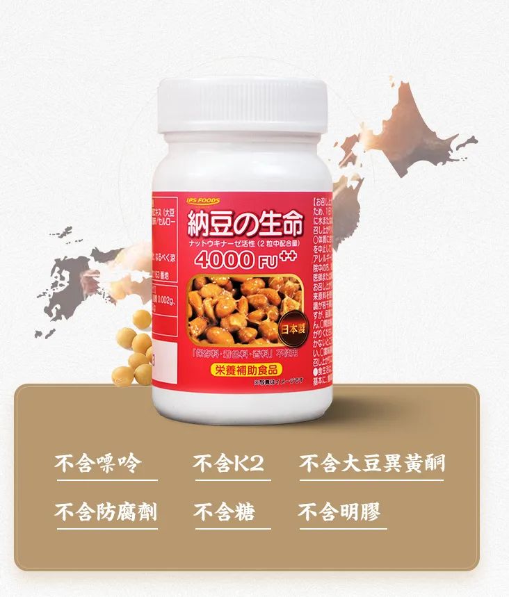 每一片含有纳豆激酶4000FU+,可以满足人体正常预防血栓需求,保持血管清洁畅通;