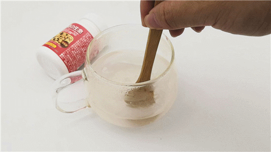 将协和纳豆激酶含片丢入水杯中,再搅拌几下;不到15秒,就已经全部融化了;