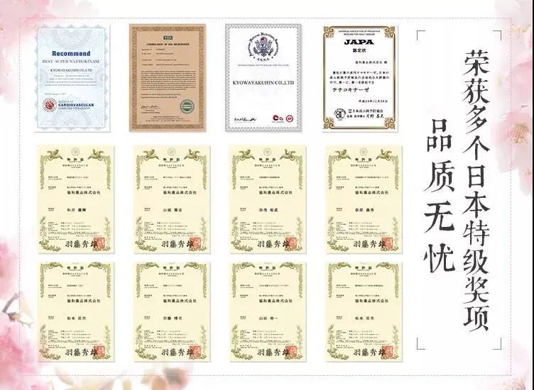 这个产品由有70年生产经验的日本协和药品株式会社生产,其荣获日本多个特级奖项,产品遍布日本各大商超药店;