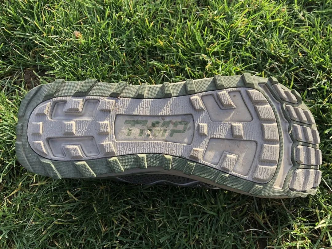 Timp 4 外底用的是 MaxTrac 橡胶。这种橡胶由 Vibram 与 Altra 共同研发,平衡了抓地力与耐磨性。凸耳比 Lone Peak 密,应该是考虑到 Timp 4 在良好路況的山径甚至是水泥路面也要有良好的抓地力及舒适度。