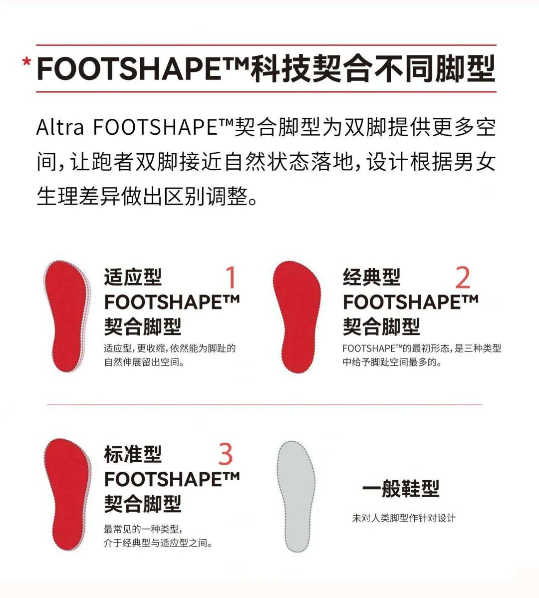 Altra 还使用其专有的 Balanced Cushioning 平台来确保跑步者的脚跟和前掌与地面的距离相等,从而使鞋子实现零落差和水平对齐。