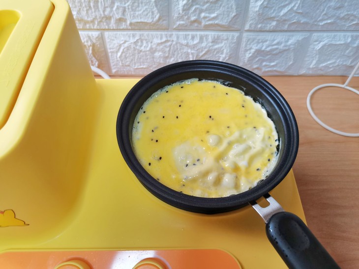 3、平底锅烧热加入少许食用油,倒入蛋液,摊成蛋饼。