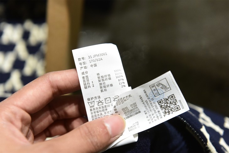 充绒量在水洗标上都标识的非常清楚