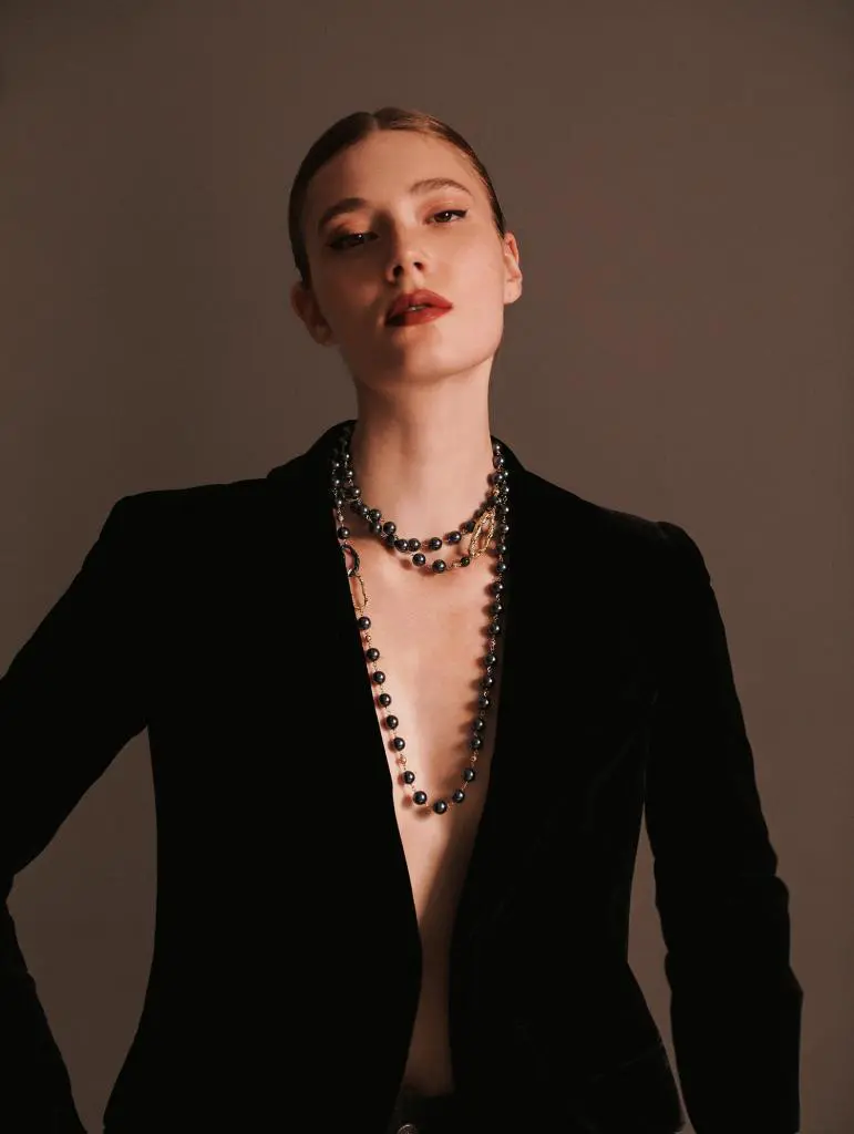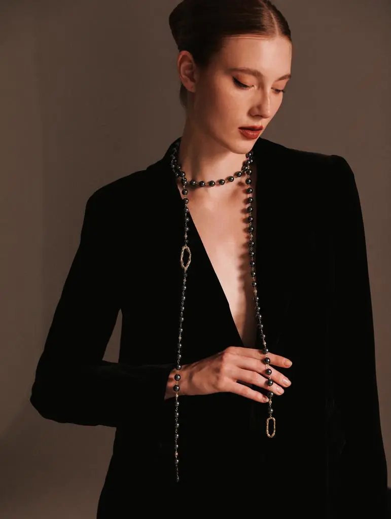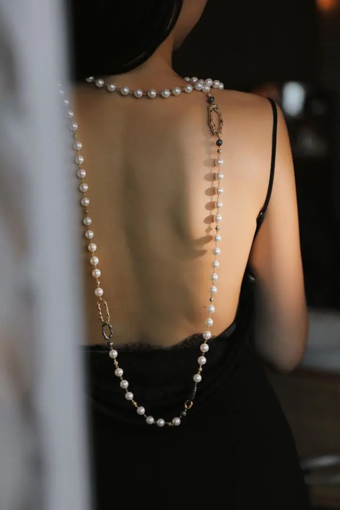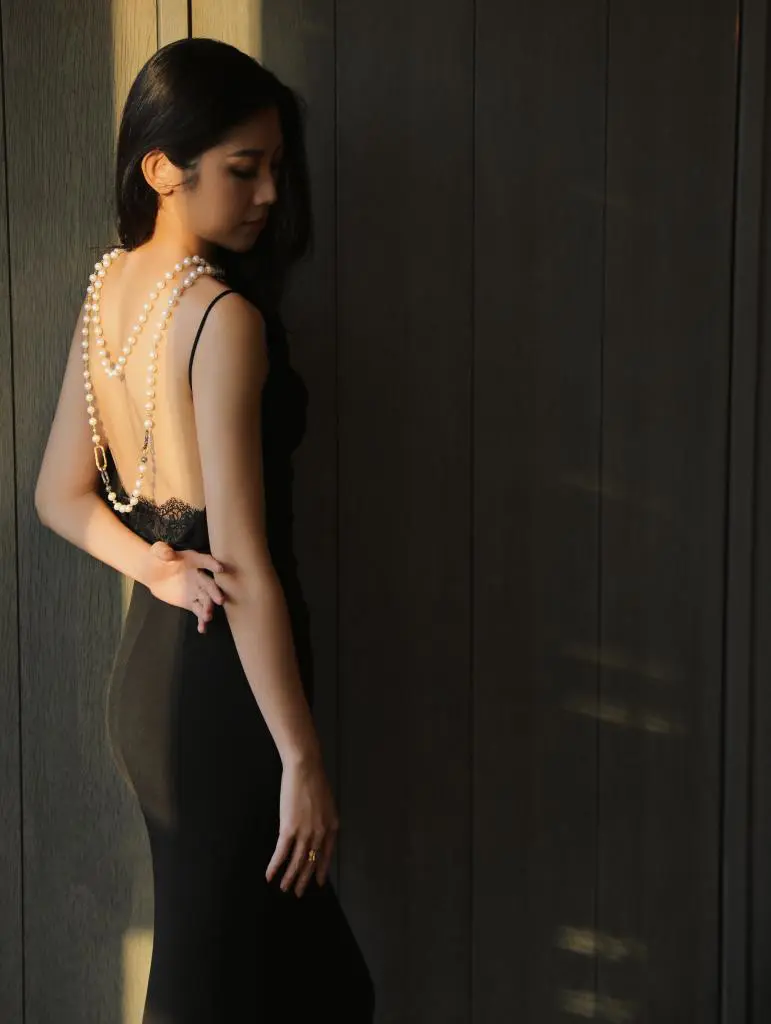 小黑裙是永不过时的时尚经典,让珍珠长链恰到好处地悬垂在胸前。这样的搭配既凸显颈部线条,又增加整体优雅感,令你散发迷人的魅力。