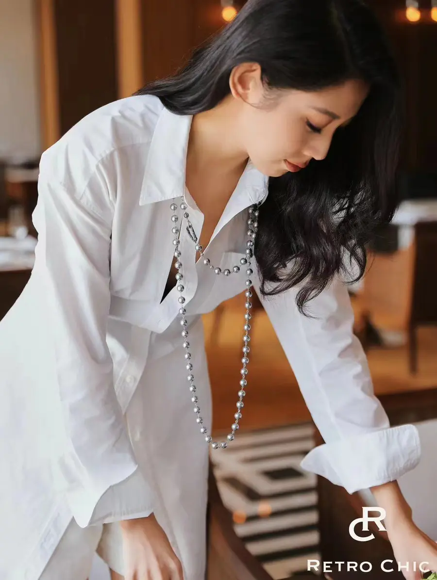 白衬衫是绝对的清新选择,珍珠长链则为其注入了一抹优雅。将珍珠长链围绕在白衬衫的领口,或者将它系在脖子上,简单又时尚,让你在休闲或半正式场合中散发清新与优雅。