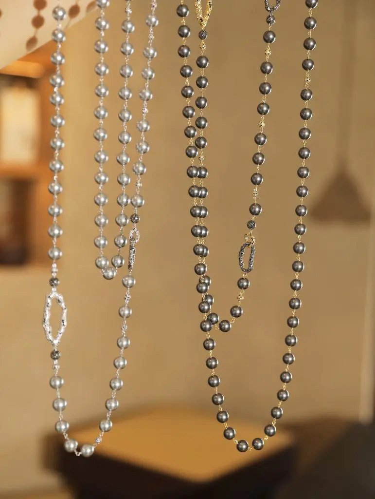 在追求特色与美感的世界里,当珍珠长项链遇上不同穿搭,呈现了一场优雅温润的梦幻色泽。