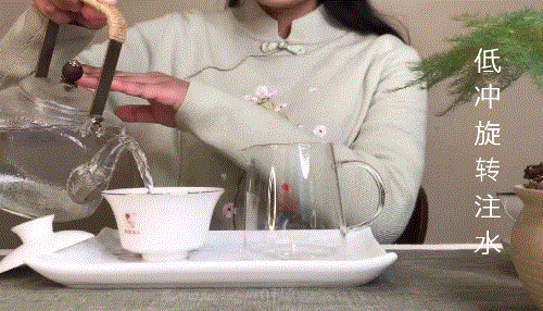 以90℃水温润茶。烧水壶中的水沸后,打开壶盖,让它静置1分钟左右(这里的时间可以根据气温来灵活调整,如天气较冷气温低时,静置时间可适当缩短;如天气晴朗气温高时,静置时间可适当增加。)