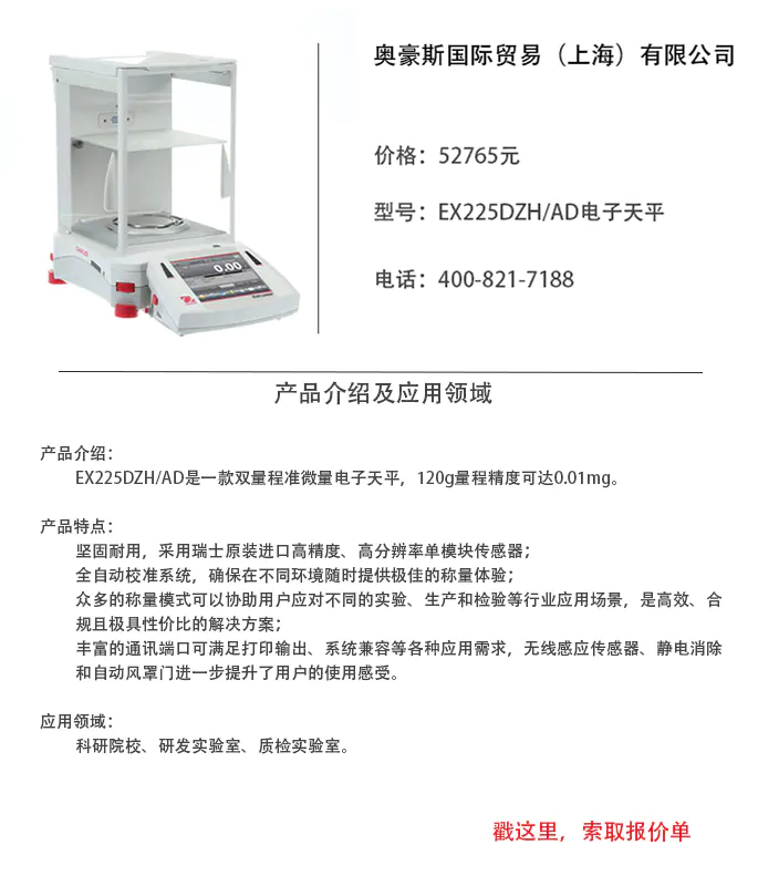 奥豪斯集团成立于1907年,拥有遍布各地的营销、研发和生产基地。通过不断为各地用户提供优质的称量产品与完善的应用方案,奥豪斯产品已遍及环保、疾控、食药、教学科研、食品、新能源和制药工业等各种应用领域,赢得了广泛的认可与青睐。我们致力于提供符合各国安全、环境及质量体系的产品,涵盖电子天平、台秤、平台秤、案秤、摇床、台式离心机、加热磁力搅拌器、涡旋振荡器、干式金属浴、实验室升降台和电化学产品等。