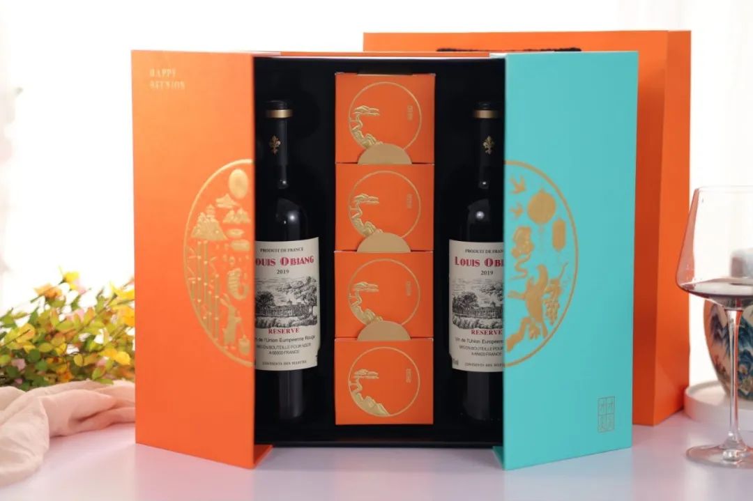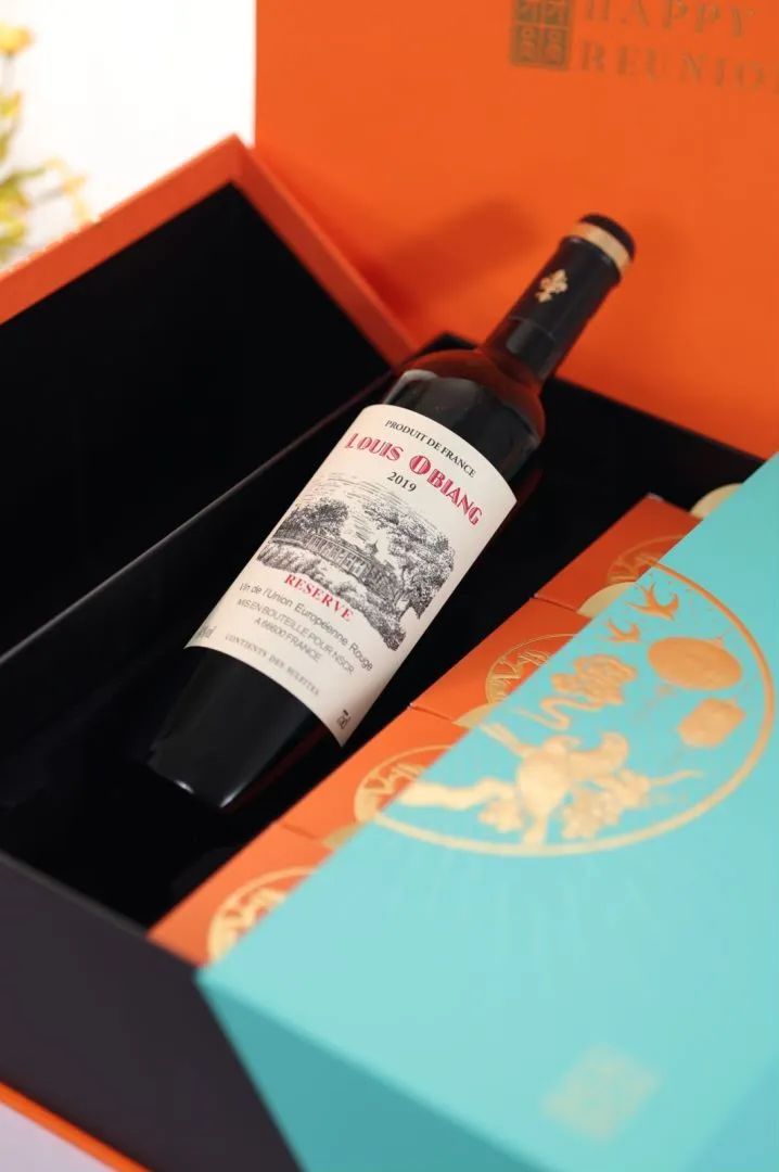 即使抛开这款酒本质不说,光这套礼盒的颜值喜庆满满!何况还送手工月饼4盒+爱M仕橙搭配TF尼蓝尊享大礼盒!