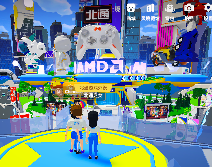进入MetaCJ元宇宙主城区,首先就是北通给每一位通心粉的惊喜礼物——在主城区的摩天大楼,熟悉的北通宙斯超大3D模型映入眼帘,MetaCJ元宇宙主场的C位,北通给通心粉们承包了!