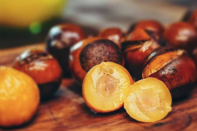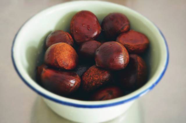 电饭锅法:将栗子切个口子,放在电饭煲中,无需放水。按下煮饭键,15分钟后将栗子取出来剥壳和皮;
