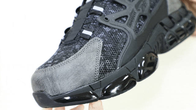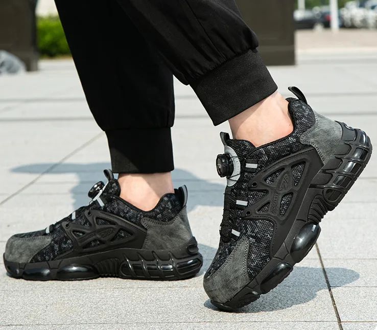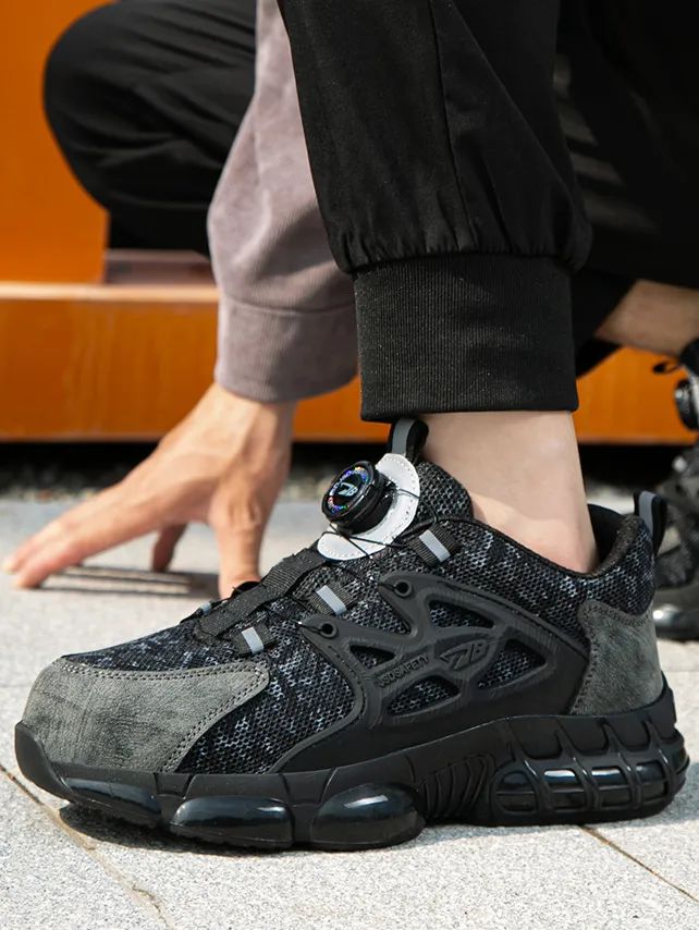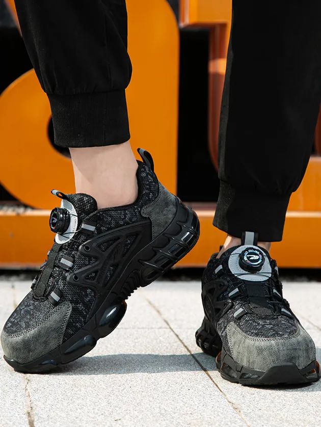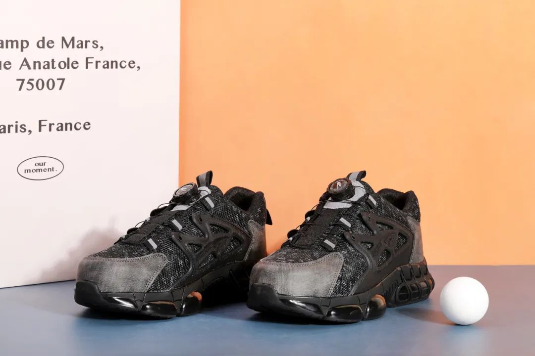笙观相沐户外飞织休闲鞋特别设计了加宽防砸钢头,橡胶包边防止摩擦割伤鞋面,防锈烤漆,久穿不生锈。