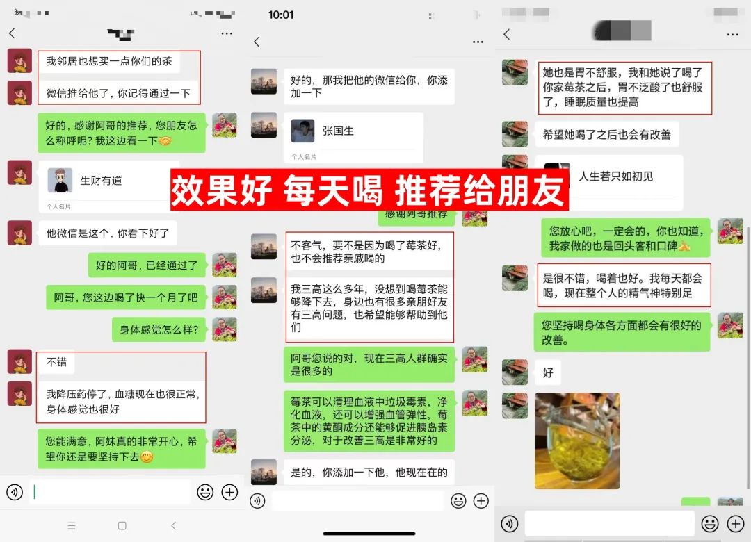 让更多亚健康人群以及三高人群能够拥有安心健康的身体还特地给新客准备了50份莓茶大礼包以及百元优惠券(仅限前50名)现在你只需要添加春燕家莓茶的微信,就可以直接领券下单了注意了:只要你现在识别下方的二维码打开名片一添加春燕家莓茶微信。就能享受到超大福利!您必须马上行动!