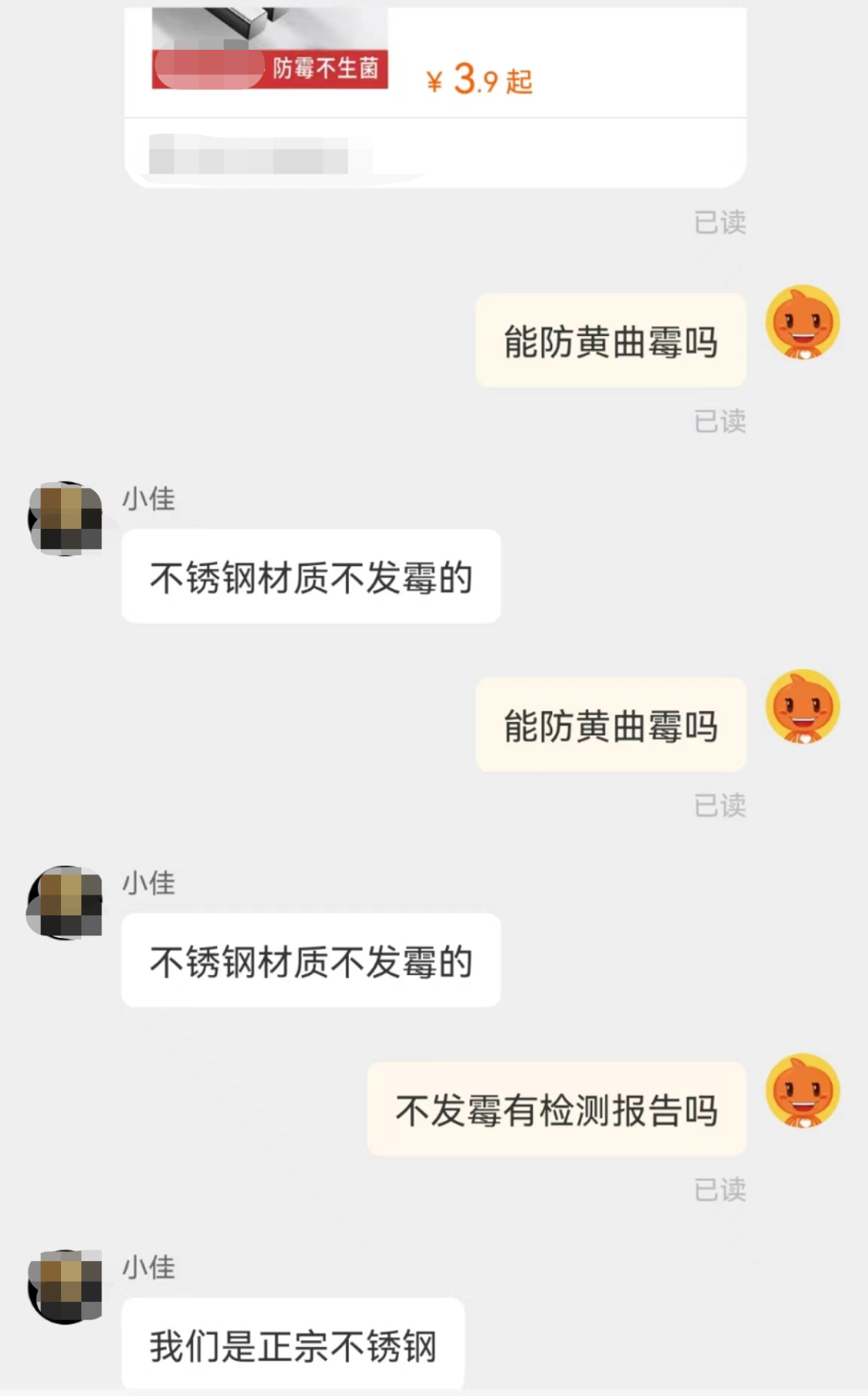 写着能防霉,但一问客服“能防黄曲霉吗”,客服就开始打马虎眼。暖暖追问了整整三遍,对方楞是拿不出一个检测报告来