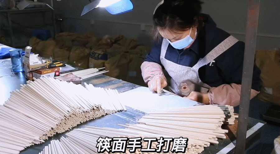 到了最终成筷、装筷的步骤,经验的师傅要日夜打着探照灯手工打磨筷面,使得筷子更加细致均匀。