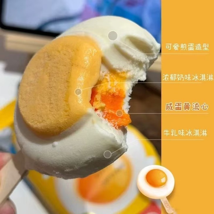 家人们谁懂啊!终于吃到网上超火的溏心蛋冰淇淋了!一口下去,浓郁的蛋黄牛奶味在舌尖散开,咸香和奶香完✨美融 合,关键是一点腥味都没有!听说是用北海海鸭蛋做的,用料也太讲究了吧!这个造型更是可爱到犯规呀!