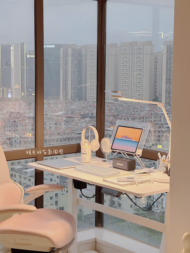 营造氛围感的书桌肯定也是少不了冷暖灯的调节