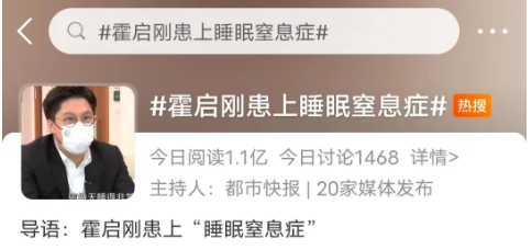 在一档综艺节目里,霍启刚就曾表示自己经常半夜因打鼾声而惊醒,即使睡足7个小时,白天还是会感觉很疲惫,后经医生专业检测,其每小时(窒息)18-19次,被诊断为中度睡眠窒息症。
