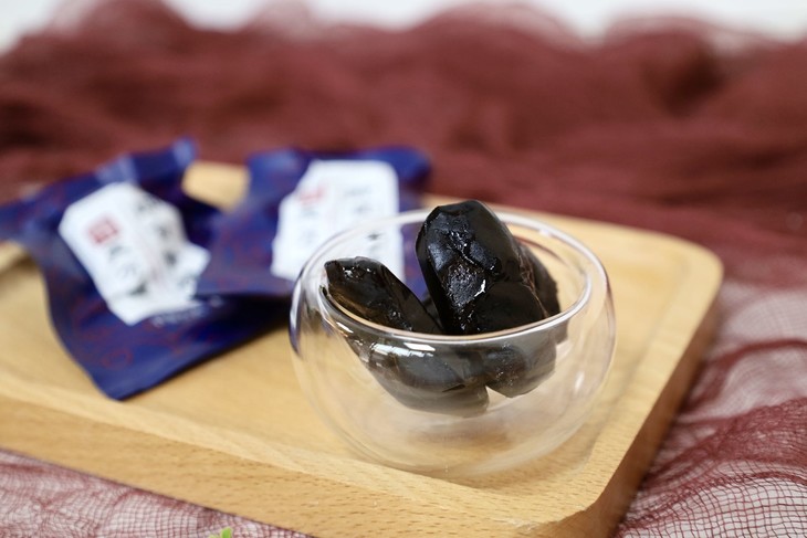 多道工序、精心炮制,最后得到的「即食黄精」颜色乌黑发亮,气味浓香;一口下去,肉质厚实,味甜中带点微苦,细腻无沙、无纤维感。