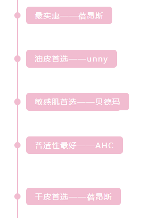 经过以上的分析以后,小西给大家总结了一个推荐清单,想入卸妆水的姐妹们可以用来参考一哈,不同肤质效果也会不同嗷,具体还是要根据自己的情况选择。