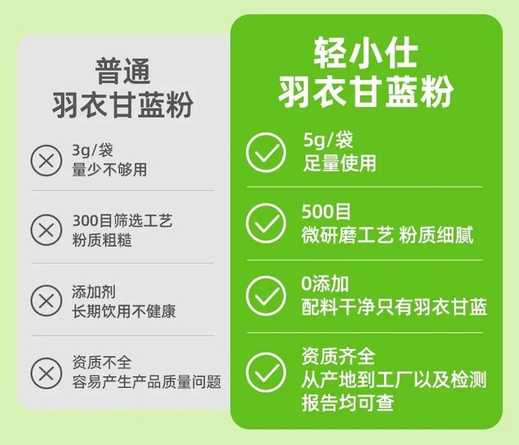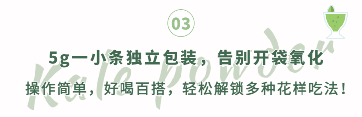 而且,更重要的是,它的质量有保障,相比于市面上卖的普通小工坊生产的羽衣甘蓝粉,轻小仕品牌在生产流程中更有安全上的优势。