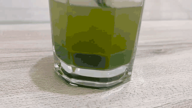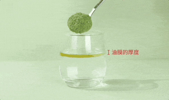 不信你看看,把羽衣甘蓝粉盛一勺倒入水杯,只要一会,油脂就被吸附成一大块油膜,刮油效果真的绝绝子。