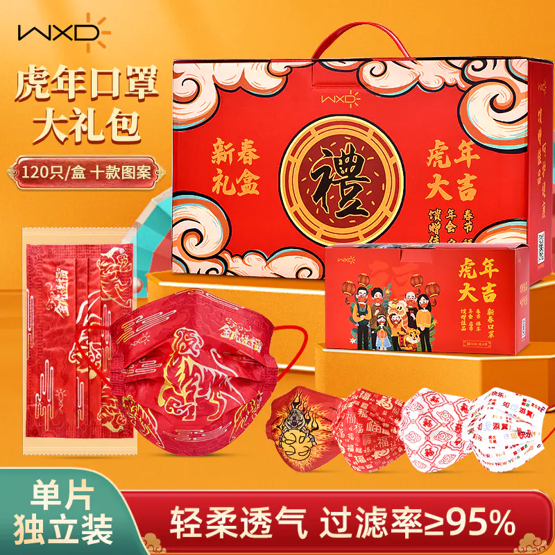 每只都是独立包装,出门时可以揣在兜里,卫生又方便!疾疫无情,人却有情。虎年将近,可以选择这款虎年口罩当做年货礼盒,在呵护健康卫生的同时,为家人好友送上一份新年祝福!
