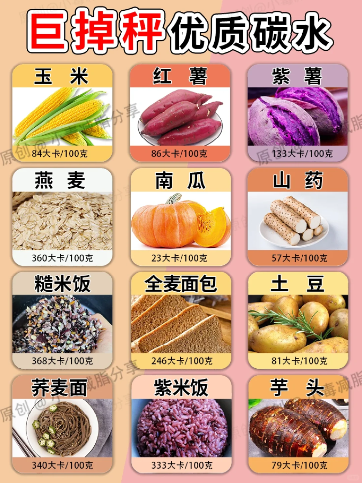 1.优质的主食 黑米、山药、紫薯、糙米、玉米、全麦面包等