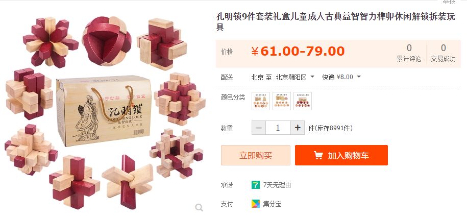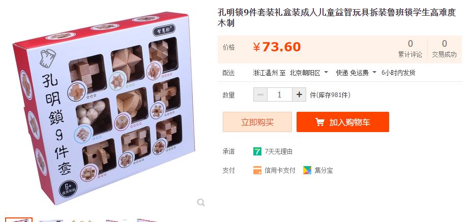 不过看了一眼市面上同规格的孔明锁,价格真的不低,一套就要快一百了!