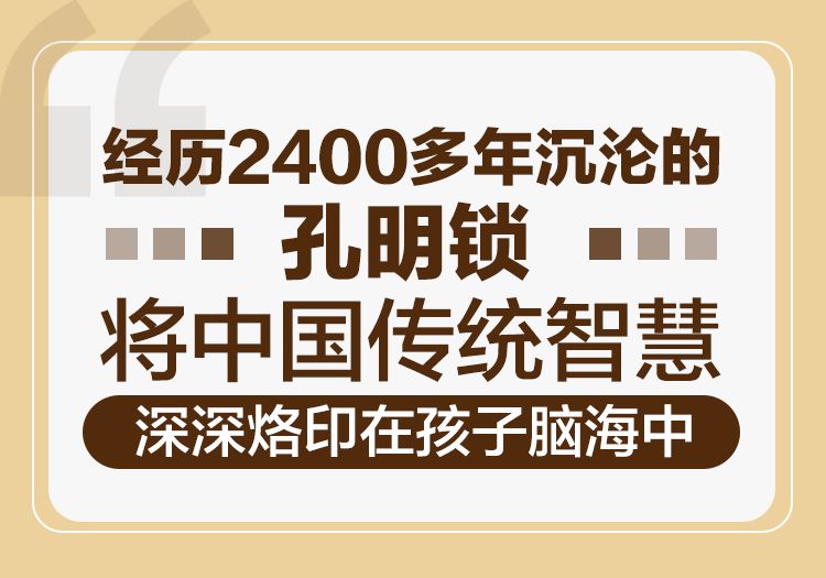 现在随着社会的发展,孩子手里的玩具千变万化,从最朴素最有文化内涵的玩具,逐渐被国外五颜六色的塑料制品玩具所替代。但是只有这小小的孔明锁,经历上千年的时光,现在依然散发着它独特的光芒。