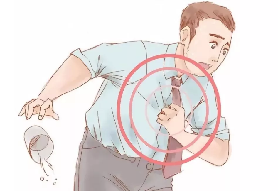 1. 劳累或情绪紧张时突然出现胸骨后或左胸部疼痛,或者牙痛、颈肩痛或者上腹痛,伴有出汗或放射到肩、手臂或颈部。