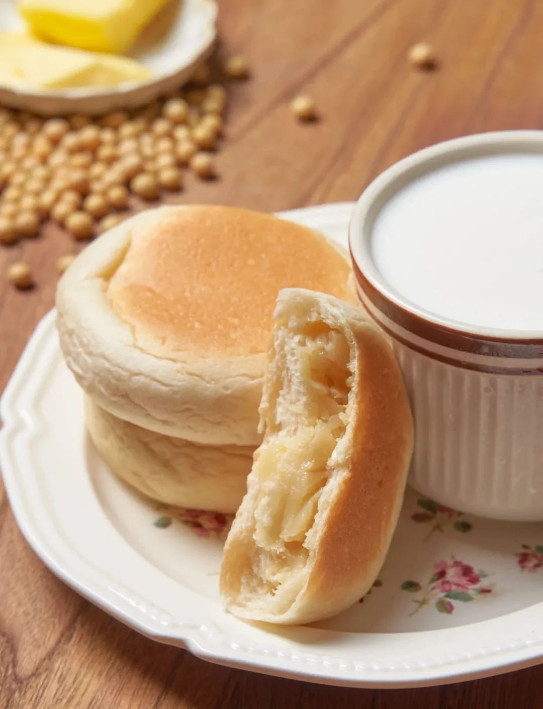没有添加蔗糖,甜度低,好吃不腻,只有豆浆本身的淡淡甘香和黄油的丝丝奶香。