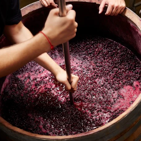 数日后的陈酿,我们就得到了红宝石般的透亮色泽,黑莓、樱桃、甘草和白胡椒香气混合的干红。