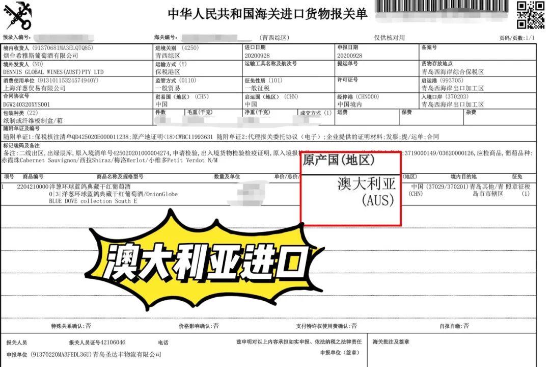 认证9字开头条形码:澳大利亚原产国。且一瓶一码,扫码可查。
