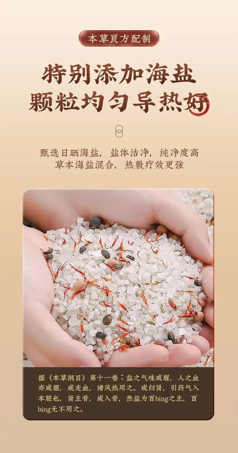 这款【北京同仁堂海盐艾草热敷包】为了提升恒温效果,特意升级为牛津布盐包,不仅防潮还耐脏耐磨!而且是双层的盐包,分量足效果强!