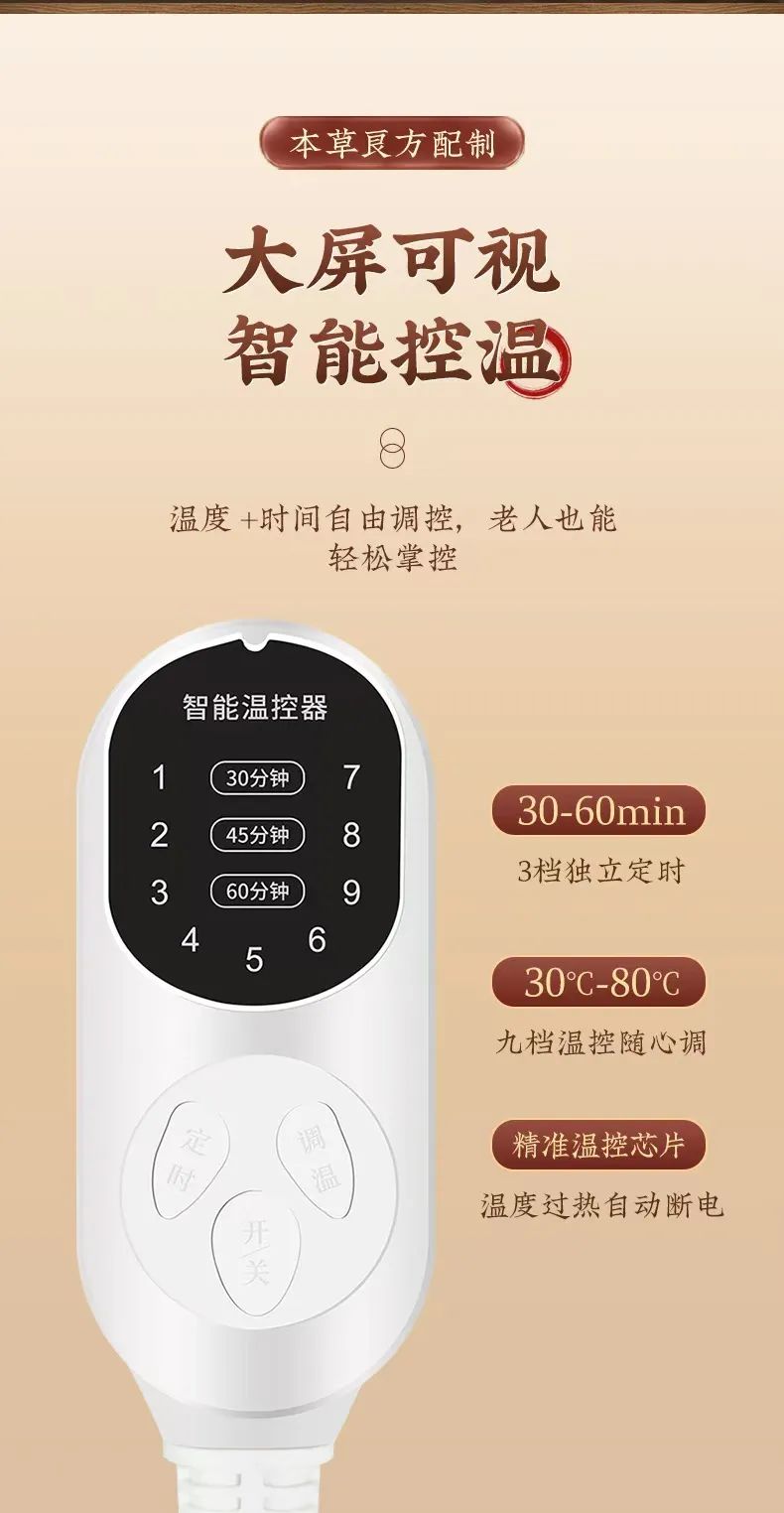 还带有3档独立定时功能,有30-60分钟可选,健忘的长辈,或者我们使用时舒服到睡着,也不怕使用过久。