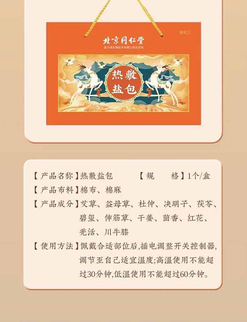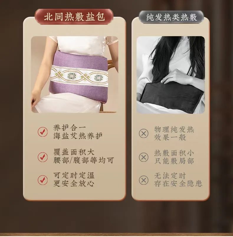 这款【北京同仁堂海盐艾草热敷包】具有潪能过热断电保护,难以烫到或灼伤,一家老小都可使用!