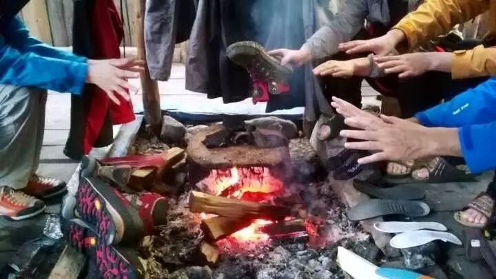 ▲徒步墨脱每晚必做功课,烤衣服,烤鞋子