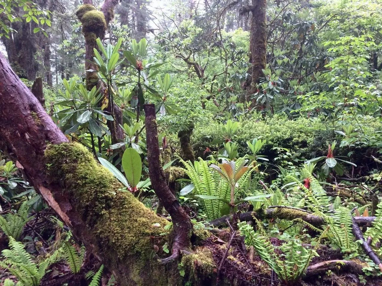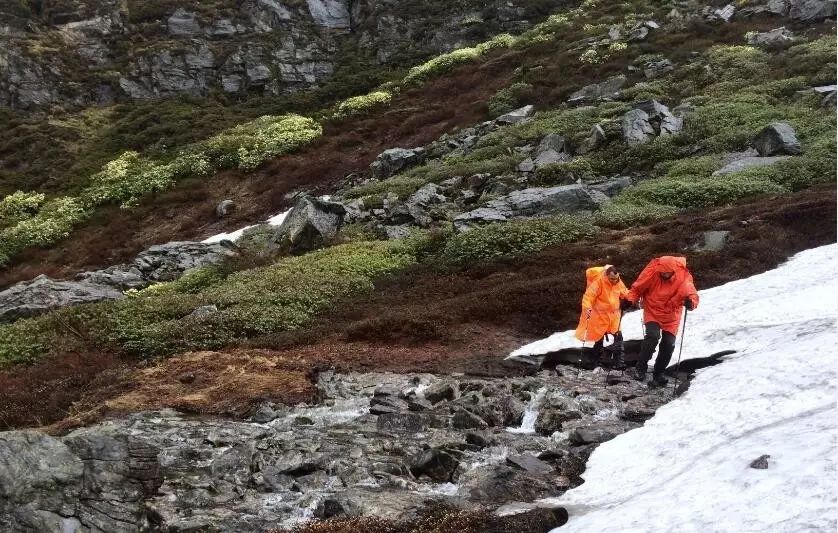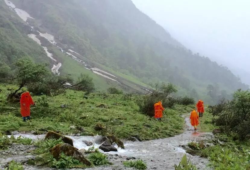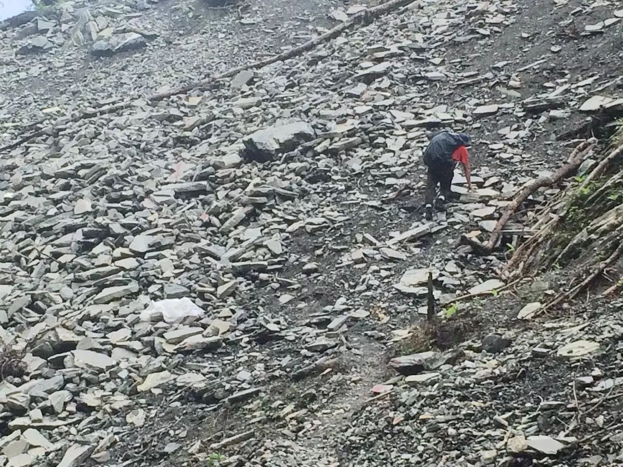 此段路风险主要有路况湿滑、乱石溪流多,小心扭伤滑倒滑坠,要注意保护膝盖,另外随着海拔降低,原始森林里潮湿闷热,要小心毒蛇、野兽及蚂蝗叮咬