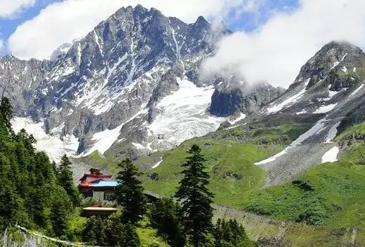 从松林口开始,地貌、植被随着海拔变化依次为:原始森林、高山乱石、积雪垭口、飞流瀑布、峡谷草甸等。