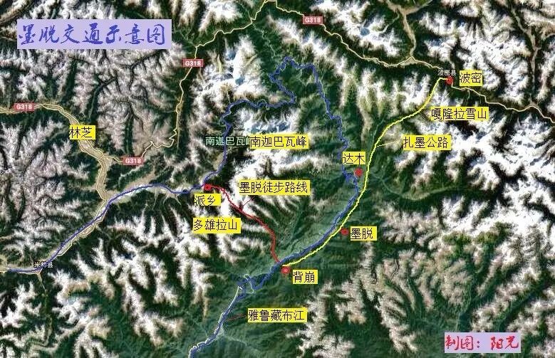内地进出墨脱,一是北向翻越海拔4700米的嘎隆雪山,通联波密;