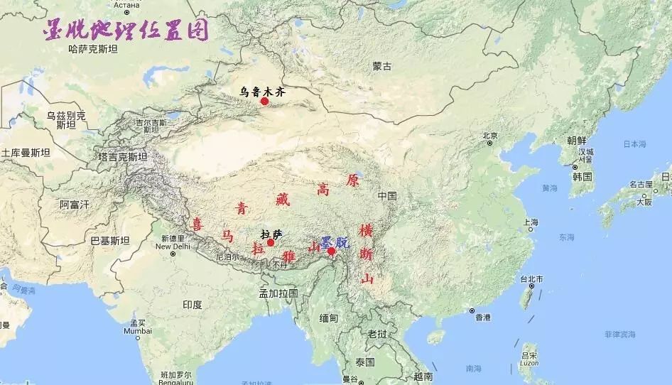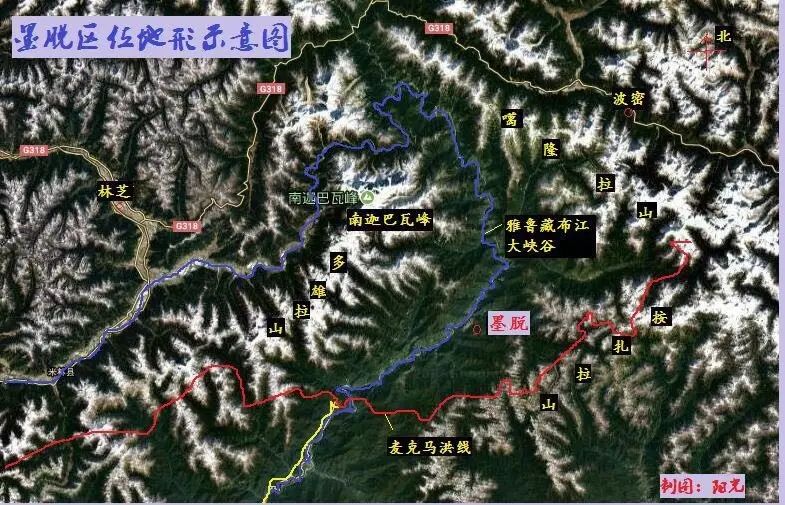 ▲墨脱区位地形图,明显看出高原孤岛交通闭塞