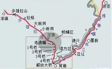 或西向翻越海拔5300米的多雄拉山,通联林芝。