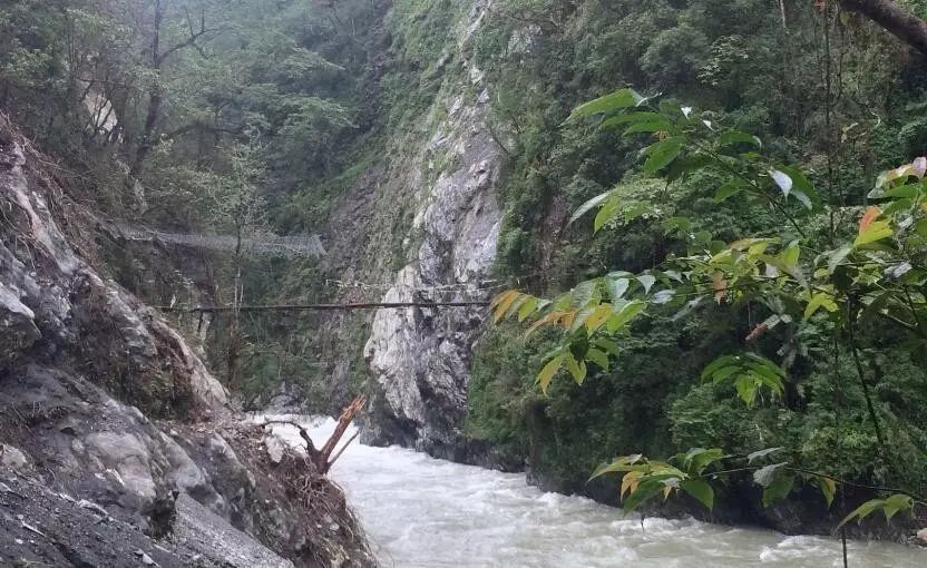 汉密(海拔2240米)~老虎嘴(栈道)~1号桥~2号桥~3号桥~塌方区~4号桥~解放大桥~背崩(海拔900米)